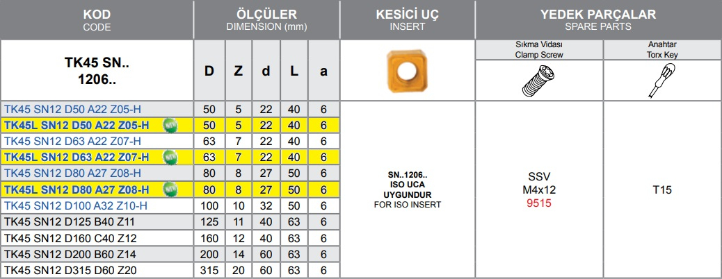 Fresa a fissaggio meccanico 45° SNMX 1206
