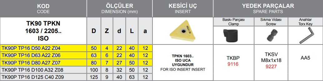 Fresa a fissaggio meccanico 90° TPKN 1603