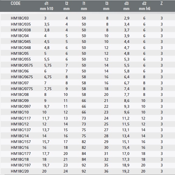 Fresa HM18C rivestita SUPREME Z3 Ø 3 - 20